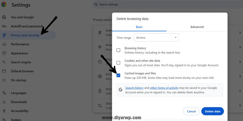 - بخش حریم خصوصی یا کوکیها را پیدا کنید.